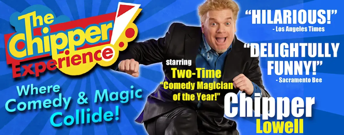 Often described as an artistic cyclone of comedy and talent, Chipper Lowell delivers a high-energy show that blends clever humor, original magic, and constant audience interaction. His performances move effortlessly from improvised comedy to unexpected magic moments, quirky visual bits, and surprising stunts that keep audiences laughing and engaged from start to finish.